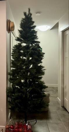 Tuscan slim pine unlit tree 2.28 m (7.5 ft ) Metal stand, 772 lips 50 ea. ornament