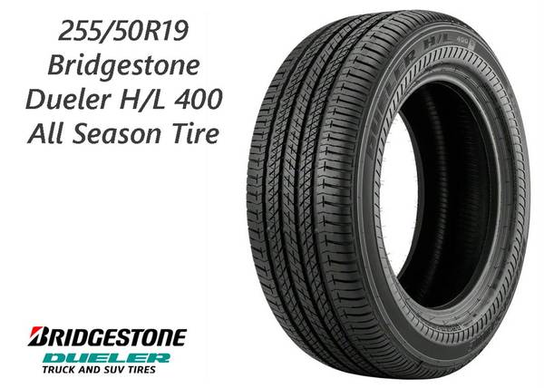 One 255/50R19 Bridgestone Dueler H/L 400 Tire for Sale. Used, but in good condition with 8/32 tread depth remaining. Below is information provided by the manufacture…